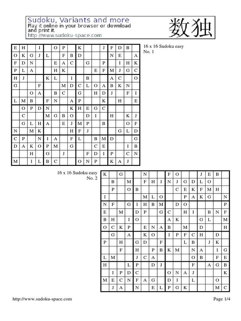 Sudoku 16 X 16 Para Imprimir : Free Printable 16x16 Sudoku Puzzles Sudoku Printable Sudoku Sudoku Puzzles / A cada lado del sudoku encontrarás su solución.. Hexadecimal sudokus (also known as 16x16 sudoku) are a larger version of regular sudoku that feature a 16 x 16 grid, and 16 hexadecimal digits. For maximum clarity and standardization, all our puzzles are printed in black and white, without shades of gray, color or images. If you want to play a different puzzle, go to the archive page and choose your puzzle. We have prepared several printable sudoku 16 x 16 of different levels: Hard sudoku 16 x 16 puzzles: